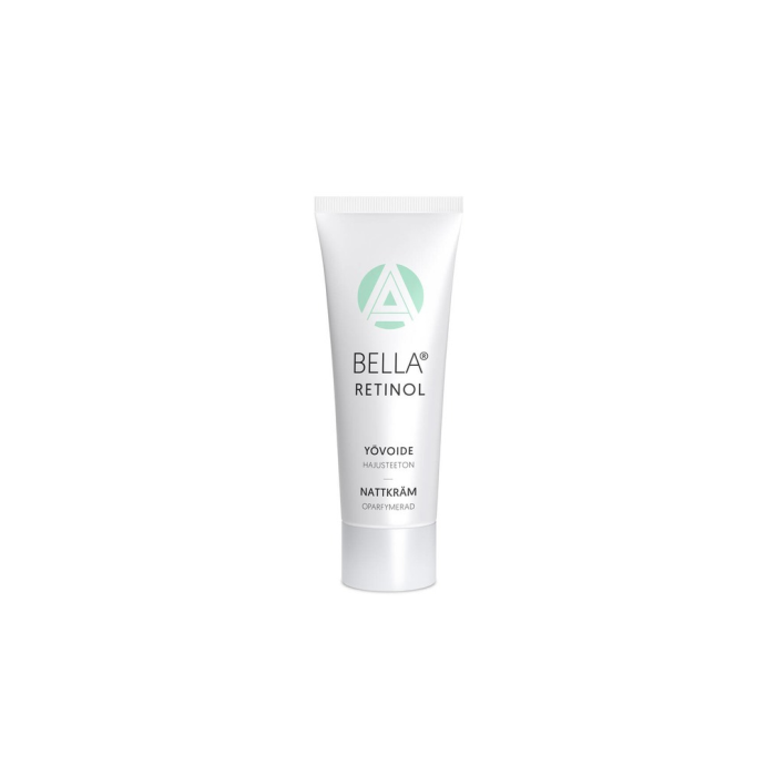 A-vitamin hjälper till att jämna ut rynkor och linjer samt påverkar ljusskador orsakade av UV-strålning genom att dämpa hudfläckar. Bella innehåller A-vitamin. Nattkrämens bas av mango-, jordnöts-, jojoba- och risfröolja vårdar huden effektivt. A-, E- och C-vitaminer bevarar och stöder hudens ungdomlighet och elasticitet. Hyaluronsyra ökar hudens fuktbindande förmåga.